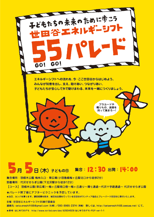 シモキタボイス実行委員会、世田谷市民運動いち、たがやせ世田谷区民の会、トランジション世田谷 茶沢会、ふろむあーす、ふろむあーすカフェ・オハナ、トランスコミック、気流舎、Never Never Land、Save the 下北沢、世田谷ボランティア連絡協議会、梅ヶ丘cafe&bar; take five、発信する子どもたち 他 呼びかけ中