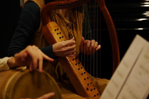 中世二列弦ハープ、サルテリ、テイバーパイプ、歌
