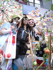 左)ゲリラ・ガーデニングのトマトとホー娘。